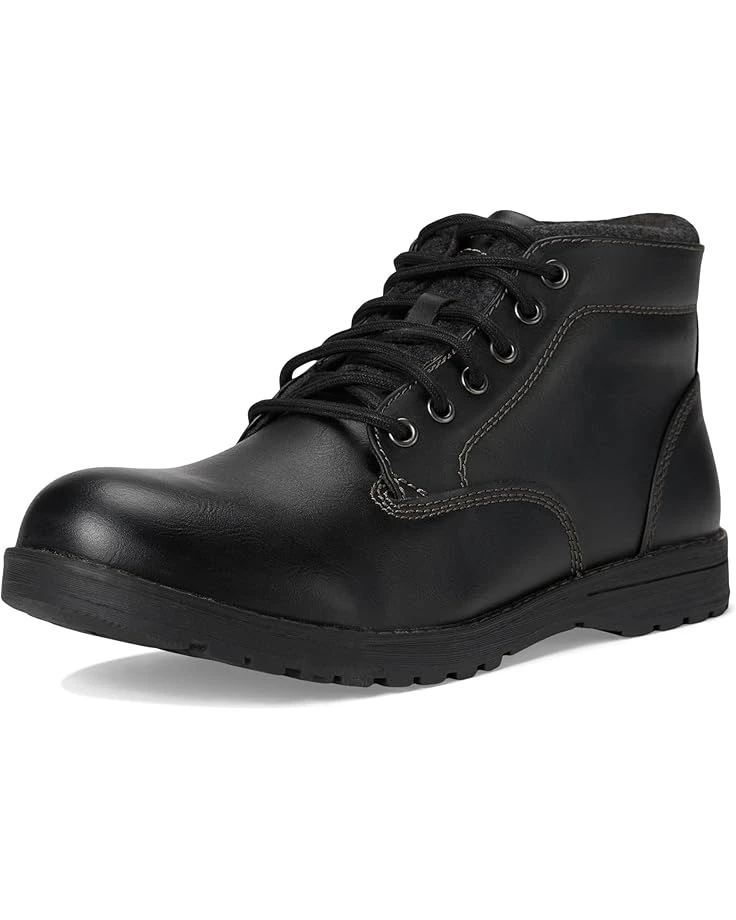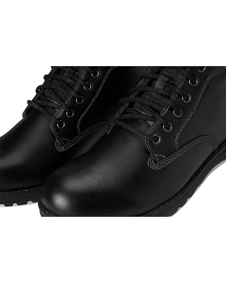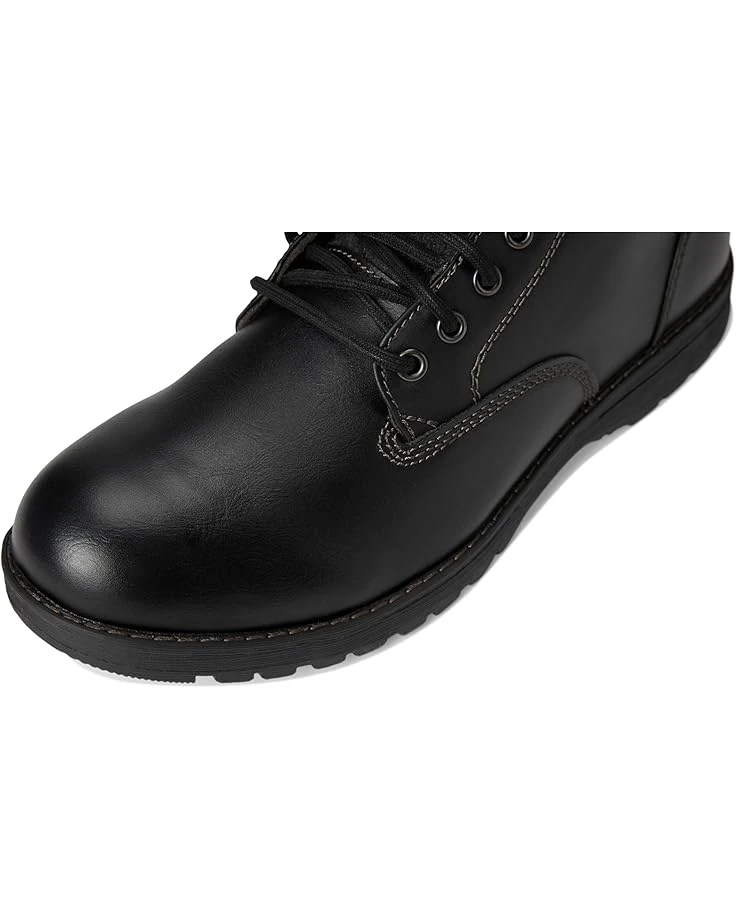 - The Finn plain toe boot features a padded collar for extra comfort. These lace-up closure boots feature a round toe silhouette, crafted from a synthetic upper with cotton lining and a memory foam insole for all-day comfort.
