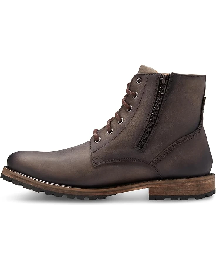- Experience the allure of sleek sophistication with these versatile and sturdy ankle-high Eastland 1955 Edition® Hoyt chukka boots. These block heel boots feature lace-up closure along with side zipper for easy on-off access and round toe closure. Leather upper gains more character with every wear while the comfort leather sock lining and insole supports and conforms to the curves of your foot.