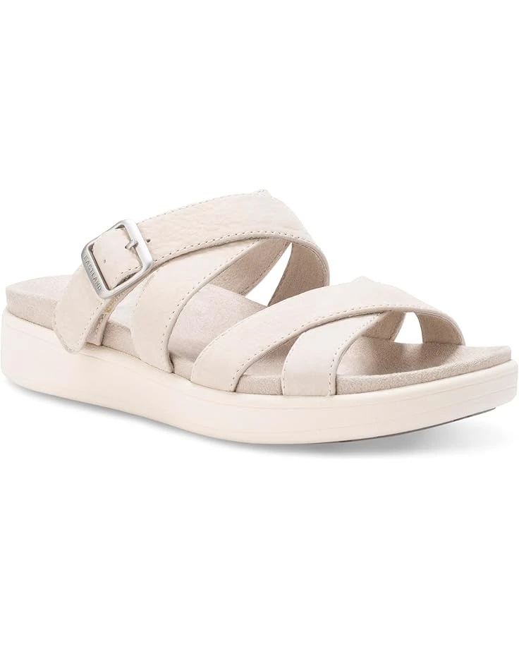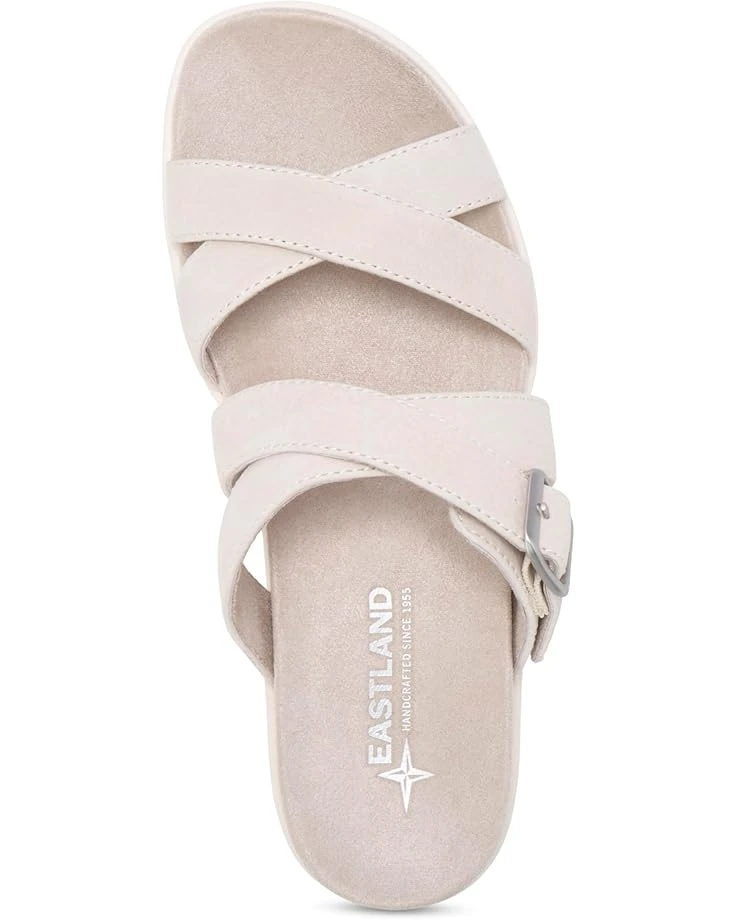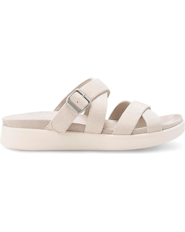 - Step into timeless style and boundless comfort wearing the Eastland 1955 Edition® Machias. Crafted with exquisite detail, this sandal boasts an adjustable strap and buckle for a bespoke fit. Its leather or suede upper, paired with a micro-suede/cotton blend lining, ensures barefoot bliss. Enjoy all-day support on the contoured cushioned footbed. Finished with a light, flexible rubber outsole for unmatched comfort, slip resistance, and durability.