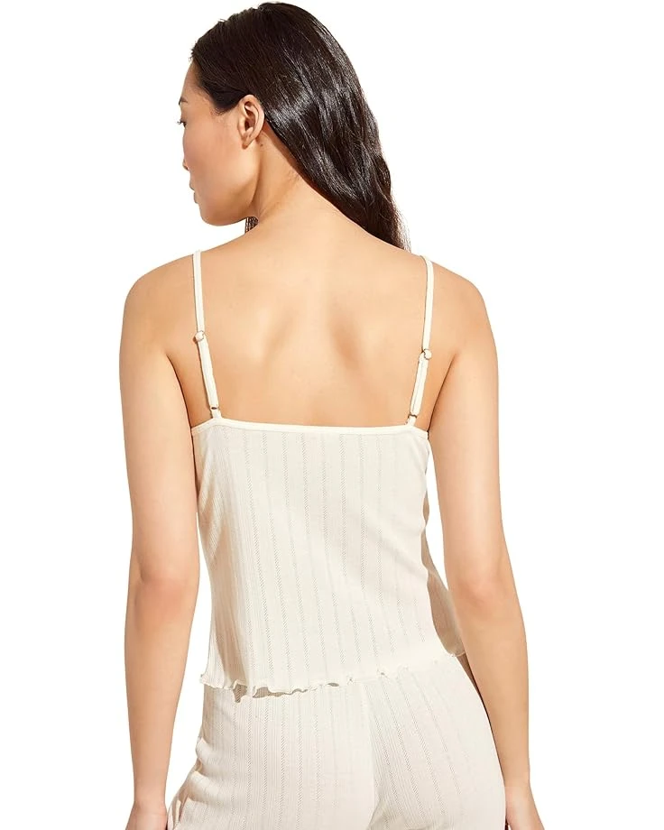 - Get ready in a shining elegant look wearing Eberjey® Cotton Modal Pointelle Cami top. It features straight neckline and back with adjustable spaghetti sraps. A slimmer fit, with cropped length give the cami a modern silhouette. A blend of breathable long staple pima cotton and signature TENCEL™ Modal offer the ultimate softness and drape.