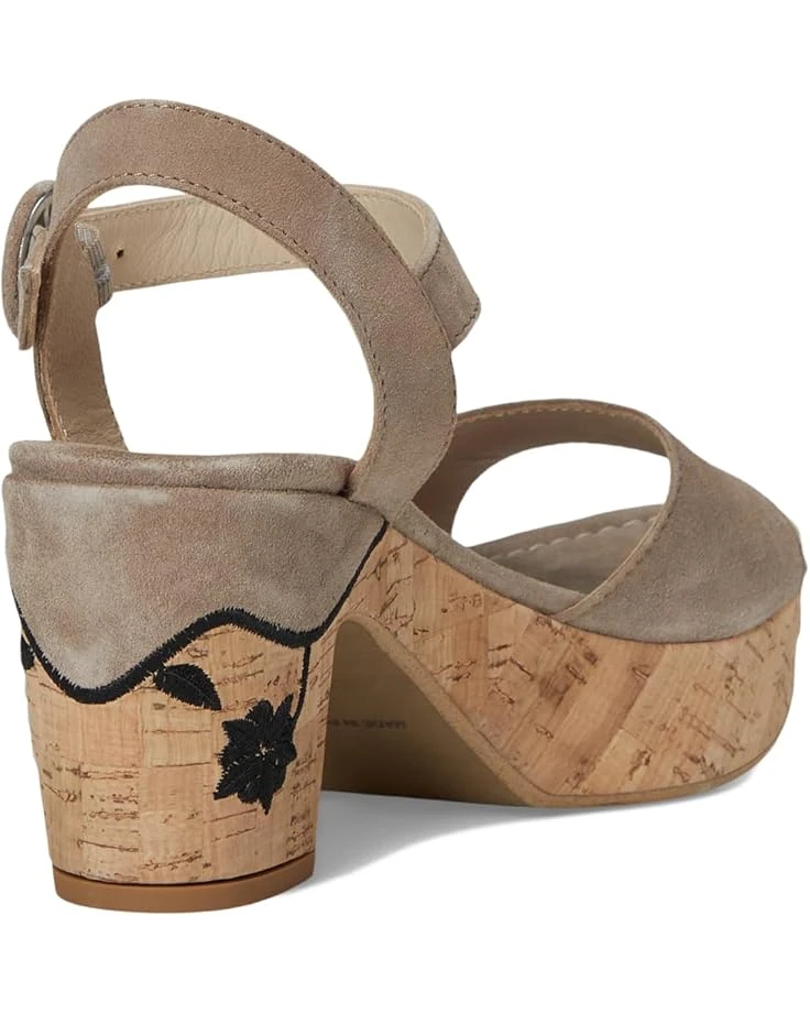 Styling is superb… the cork sole with embroidery…and suede is smooth well made!! I walked back and forth on the carpeting a couple of times and the sole rocked, teetering too much for me to feel sure footed in these platform sandals. A shame cause they look so good…