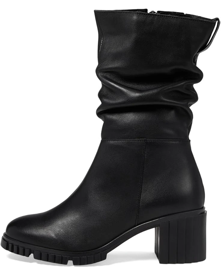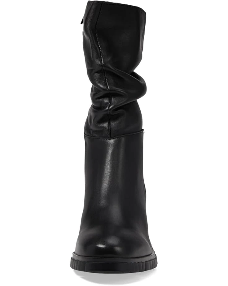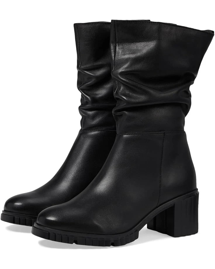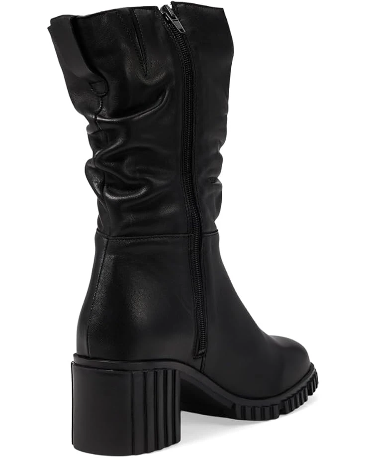 - Add a modern twist to your regular style wearing the calf-high Eric Michael® Mercedes Bootie Heels. This round toe pair features leather upper construction with cowl effect and zippered side closure.