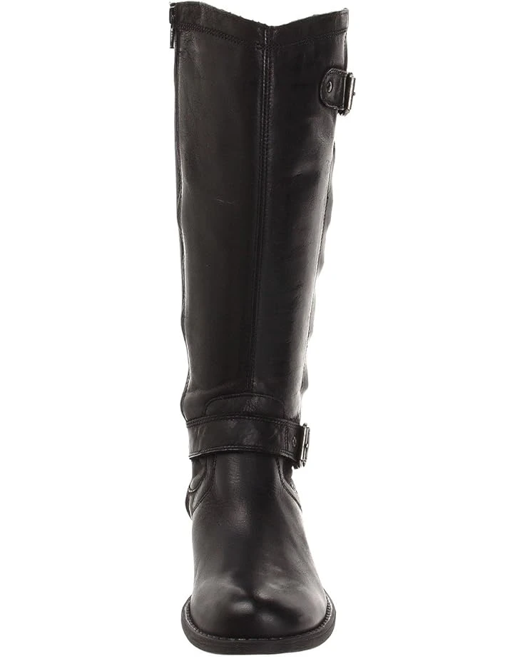 These boots are great! I imagine the Zappos personnel are all fainting as I have actually gotten the perfect pair of riding boots on the first try! (Well, okay, I did try another pair first with another company and had to return those as the calf was too wide…but nailed it on my first try with Zappos!) Anyway, these are really cute and comfy. They are great for narrow calves and even an adjustable buckle, although they’re nice and narrow even without it. They also look fairly classic as riding boots which I wanted. But still feminine, not too rugged. The ankle shape is just right, not too tapered and not bulky. I also like that the leather isn’t too shiny, but kind of matte. I do need a bit more arch support arch so I insert a thin insert and tuck my orthotic under it, thus the 4 stars for comfort-other than that they are comfortable! Anyway, the boot shape and heel height are just right so that you can dress them up a bit or go out casually, just what I was looking for. I recommend these highly!