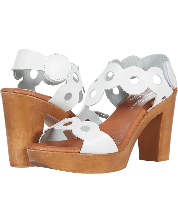 - The Eric Michael® Sierra heeled sandal is perfect for a day out and about. The strappy leather upper boasts scalloped edges and large perforations while the hook-and-loop closure lends a secure fit.