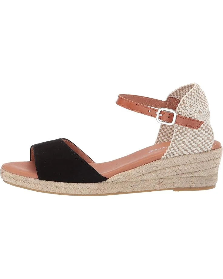 I’d been scouring the internet for cute wedges that weren’t very high, and finally found these. They are lightweight and very comfortable, and I look forward to wearing them. My only small complaint is I wish the heel of the sandal was also metallic and not the woven fabric.